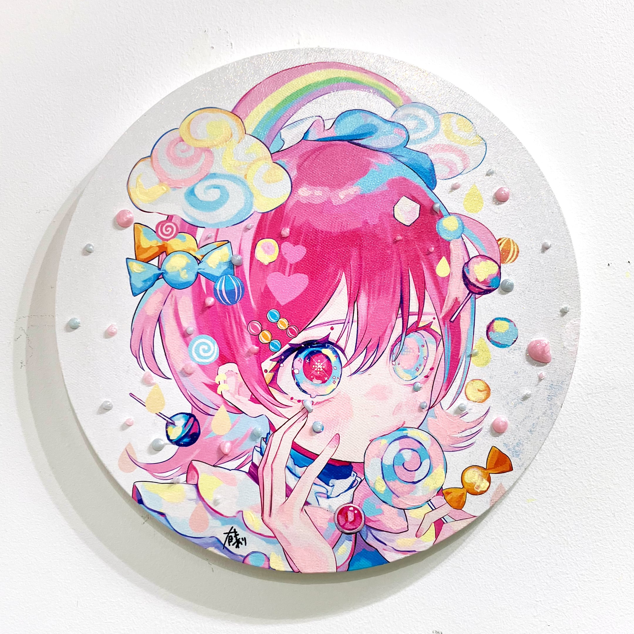 アクリル、グルーガン、グロスワニス、グリッターラメ/キャンバス印刷