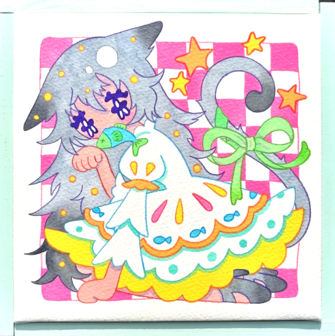 水彩、色鉛筆/木製パネル、水彩紙