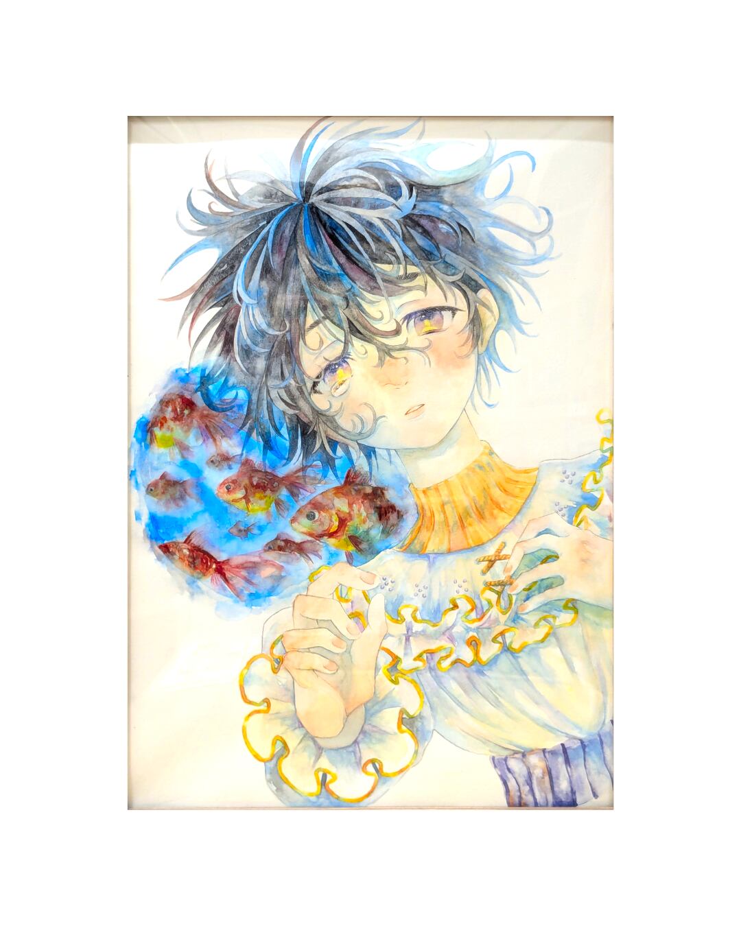 透明水彩の豊かな色彩とにじみを重ね、静かで彩やかな世界を描く。