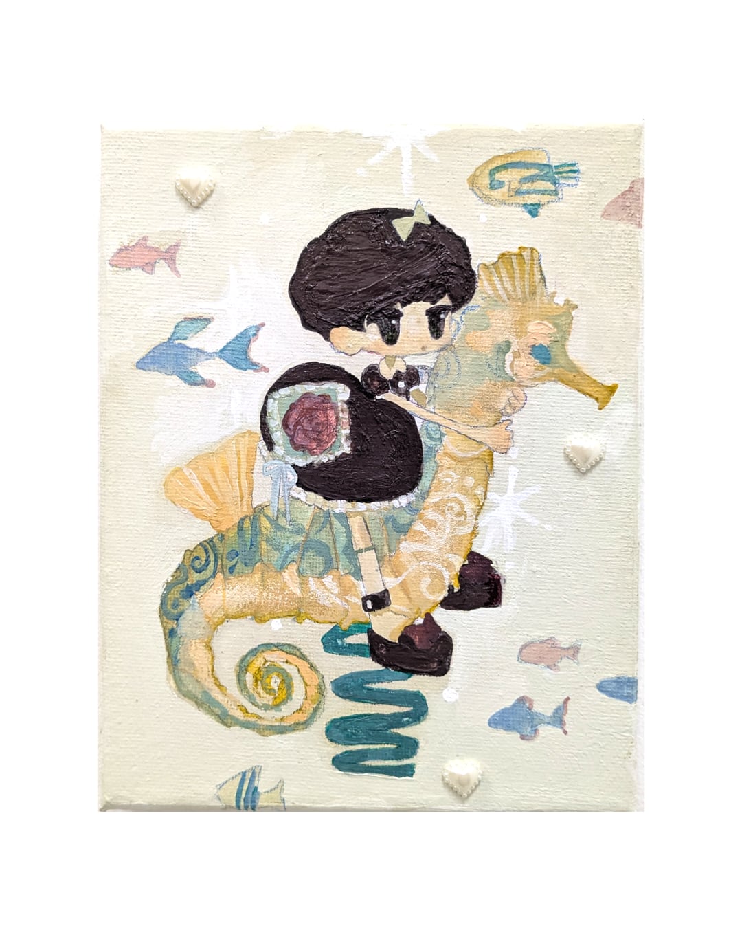 レトロな雰囲気を持つモチーフと丸みのある曲線や装飾を組み合わせて柔らかさと親しみやすさを表現しています。日常の中にある小さなときめきやかわいいという感覚をレトロで幻想的なイメージとして再構成し、白昼夢のような曖昧でふわふわした空間を作り上げています。