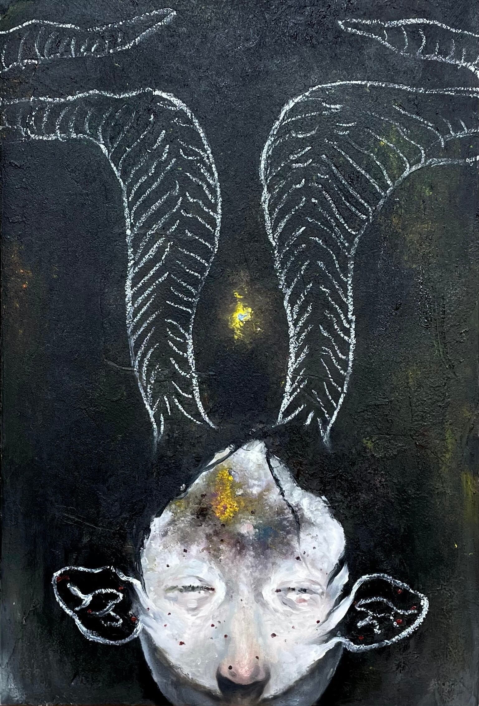 主に自分の夢について描いています。私の夢は、自分の体についての悩みや社会的な不安などネガティブな感情から来ています。夢を通して自分の潜在的な恐怖を知り、克服していくための営みが現在のテーマです。ただ夢の中にいる、無力な存在を現実の自分に当て嵌めて、遠いどこかの苦しんでいる人達に対して何もできない私自身を慰めているようにも思えます。私の絵は、結局自分を助けるためのものです。
